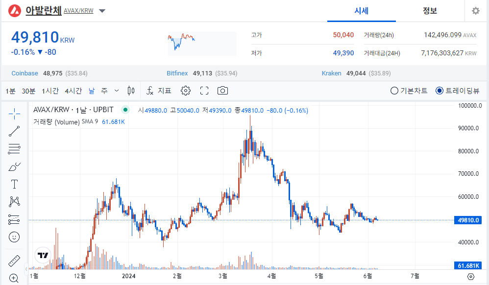 24/06/07 아발란체 시세 일봉차트