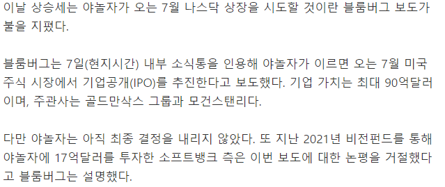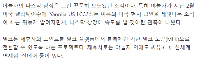 밀크와 야놀자? 야놀자는 나스닥에 상장하나?