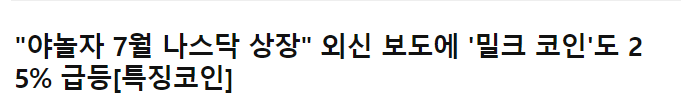야놀자가 오는 7월 나스닥 상장을 시도한다는 기사로 인해 밀크가 급등을 한 것 같습니다.